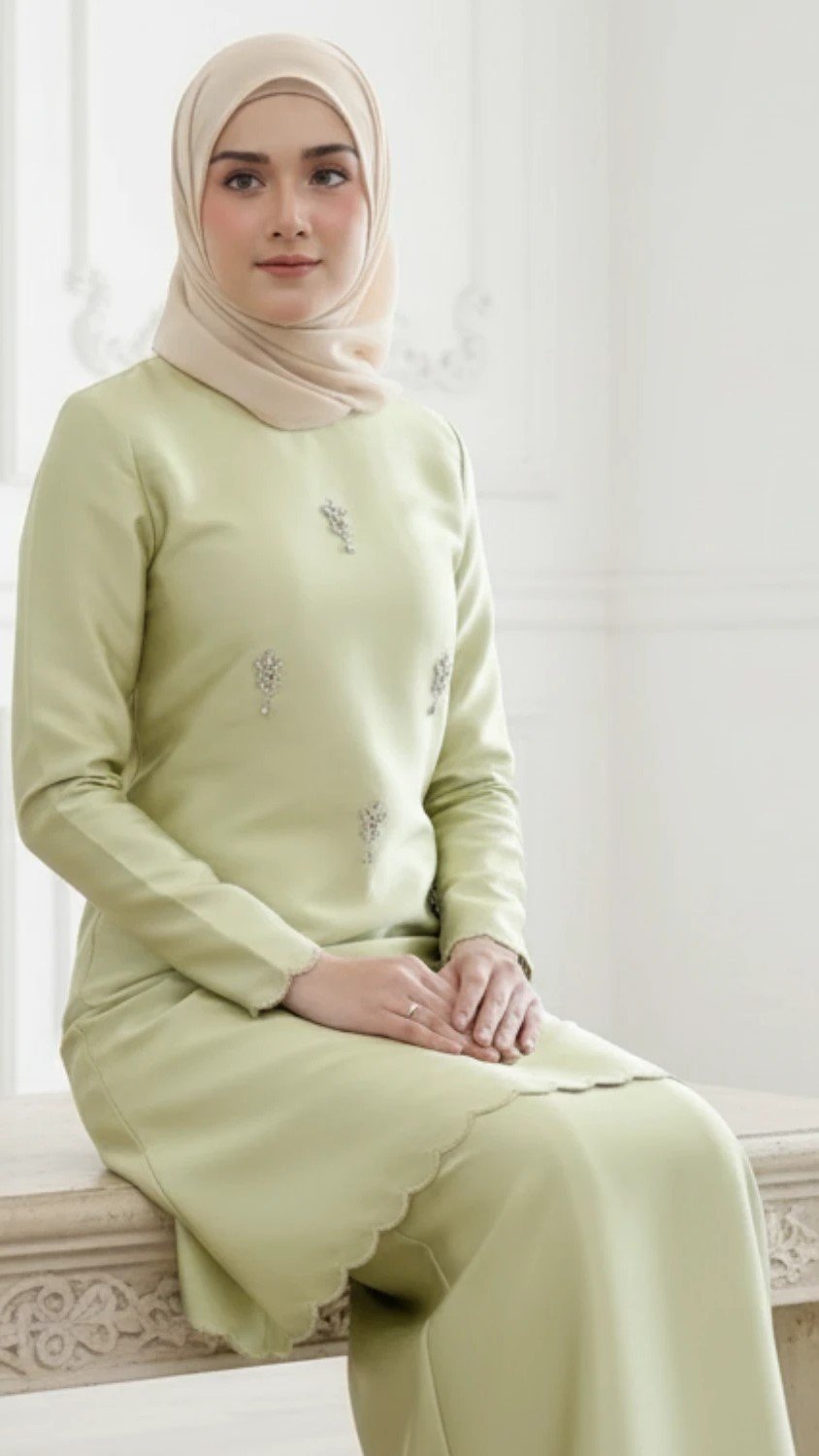 Sabrina Kurung with Beading Embroidery Honey Sage – Limited Edition